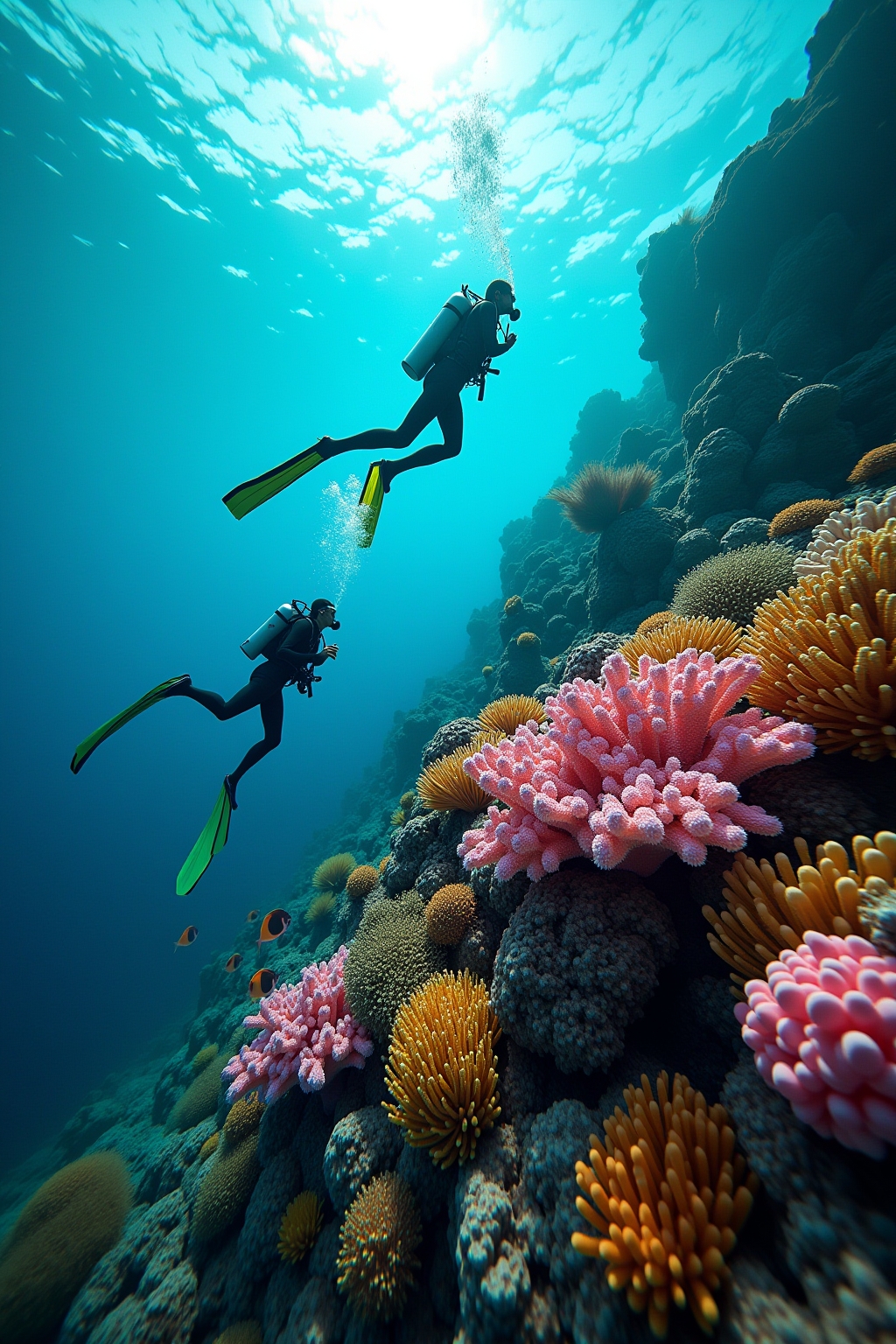 - Taucher können zahlreiche Meereslebewesen wie Rochen, Schildkröten und Riffhaie beobachten.