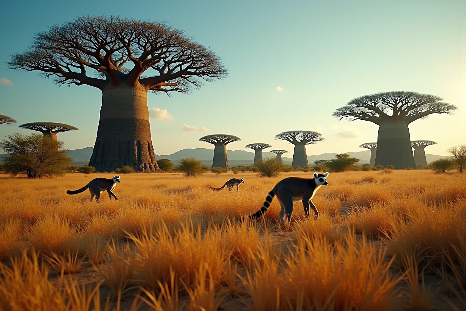 Madagaskar beherbergt eine außergewöhnliche Tierwelt mit 90% endemischen Arten, die nirgendwo sonst auf der Erde vorkommen. Die bekanntesten Vertreter sind die verschiedenen Lemurenarten, von denen über 100 Spezies auf der Insel leben – darunter der Katta mit seinem geringelten Schwanz und der Indri mit seinem markanten Gesang. Weitere Besonderheiten der madagassischen Fauna sind Chamäleons in unzählbaren Varianten, darunter das kleinste der Welt, sowie Fossas, die größten Raubtiere der Insel. Auch die Baobab-Bäume mit ihren imposanten Stämmen prägen die einzigartige Naturlandschaft dieses Biodiversitäts-Hotspots im Indischen Ozean.