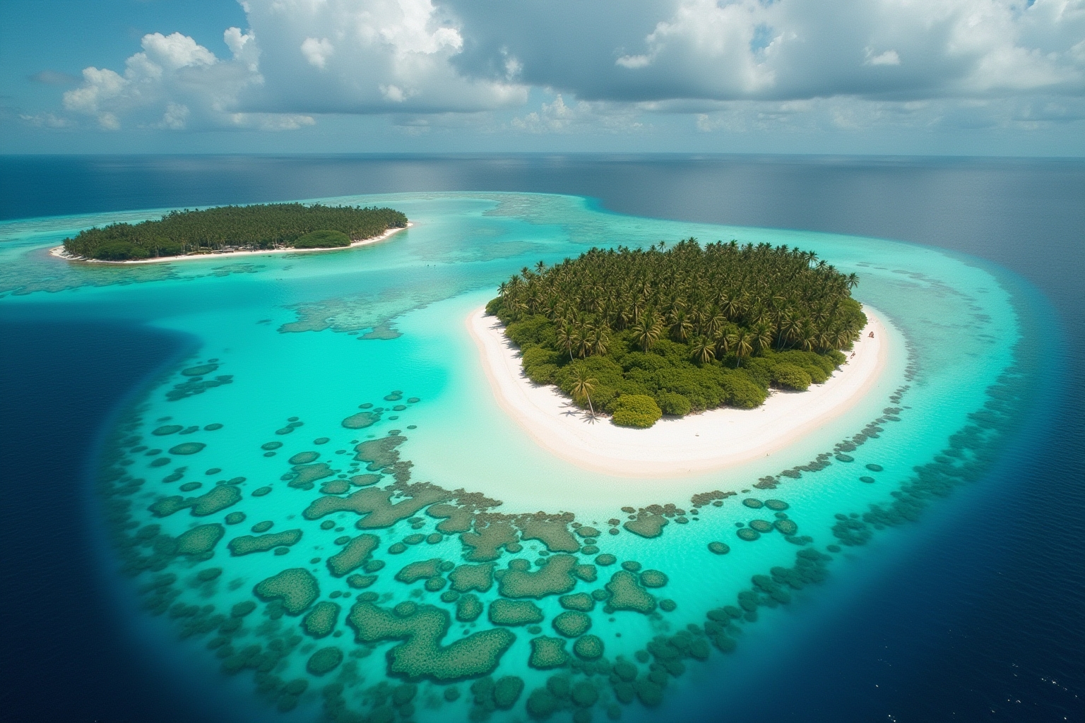 - 29 Atolle und 5 Inseln mit türkisfarbenen Lagunen und unberührten Stränden